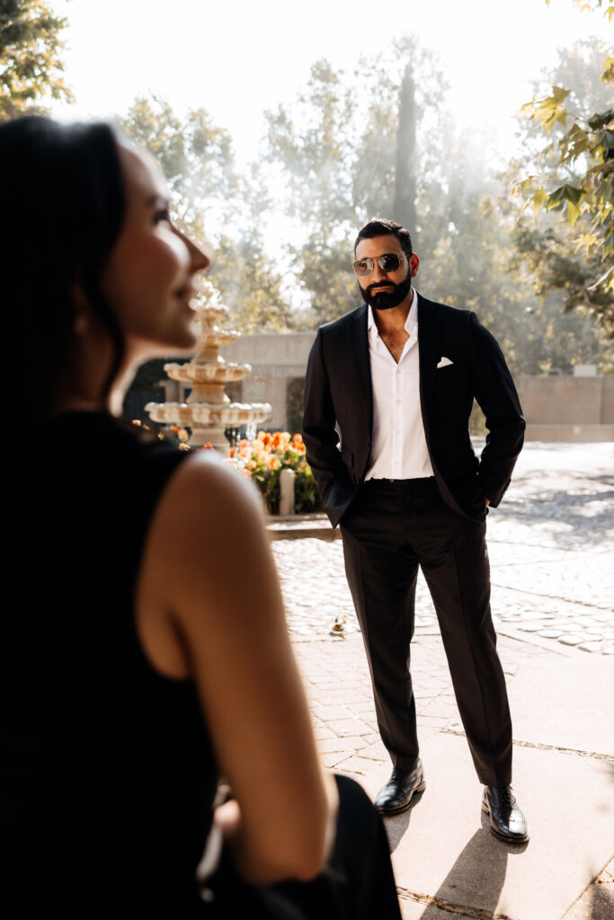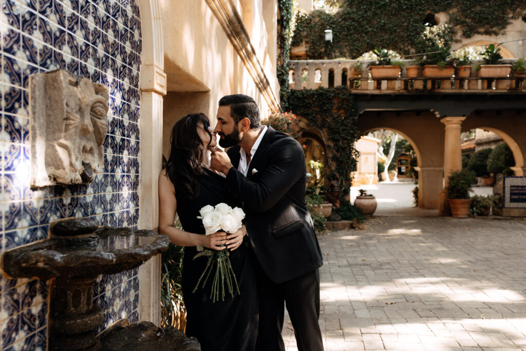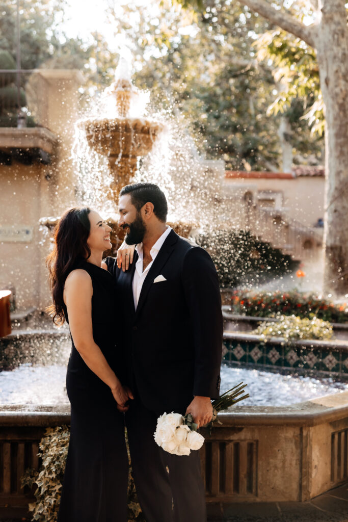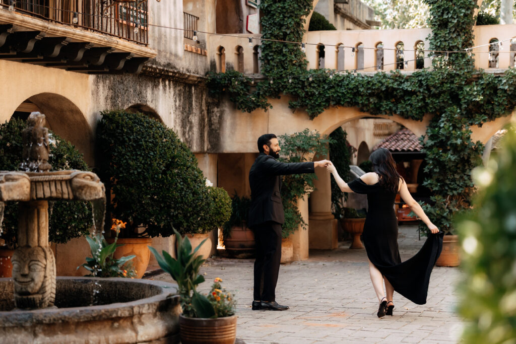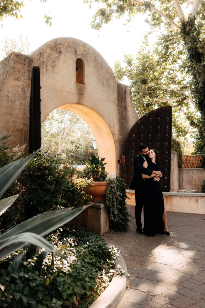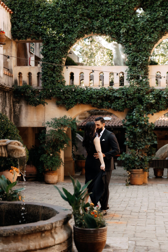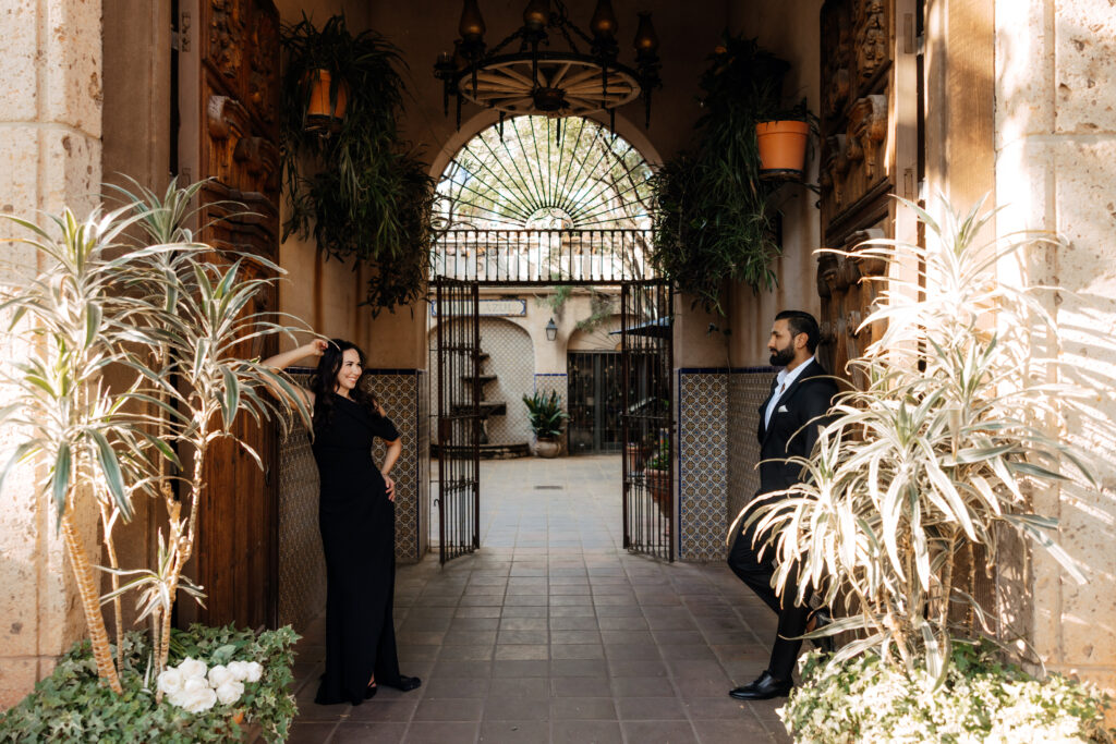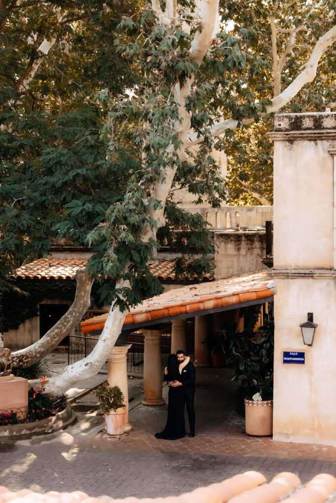 After sunrise, we made our way to the romantic Tlaquepaque Arts & Shopping Village, where colorful stucco walls, vine-covered balconies, and cobblestone alleyways created a warm and textured backdrop for their portraits. If you’re considering Tlaquepaque engagement photos, keep in mind that a permit and fee are required for professional photography sessions. You can find everything you need to know and request a permit directly here: Tlaquepaque Photography Permit Info.